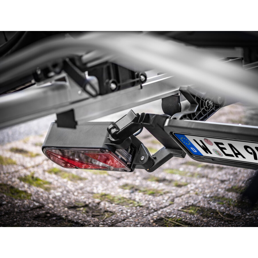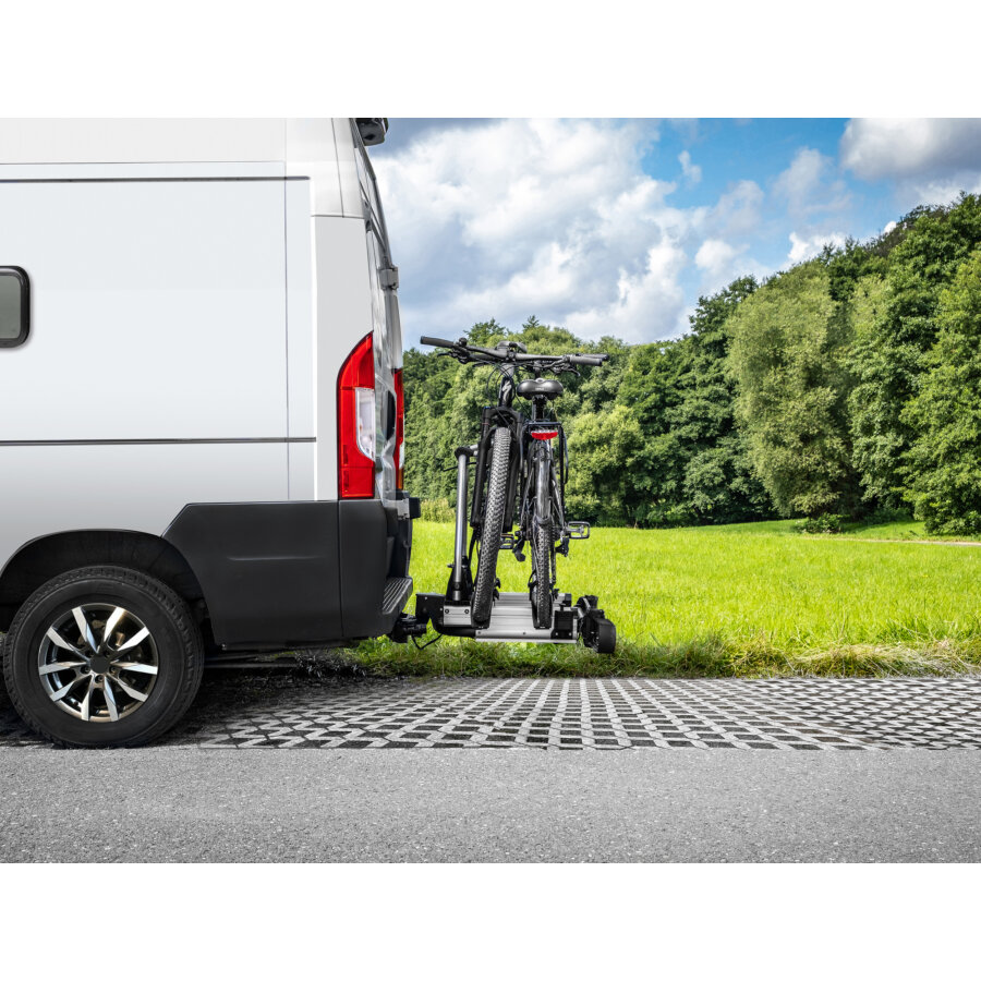 Pliable et coulissant. Homologué jusqy’à 60kg, permet de transporter 2 vélos électriques.